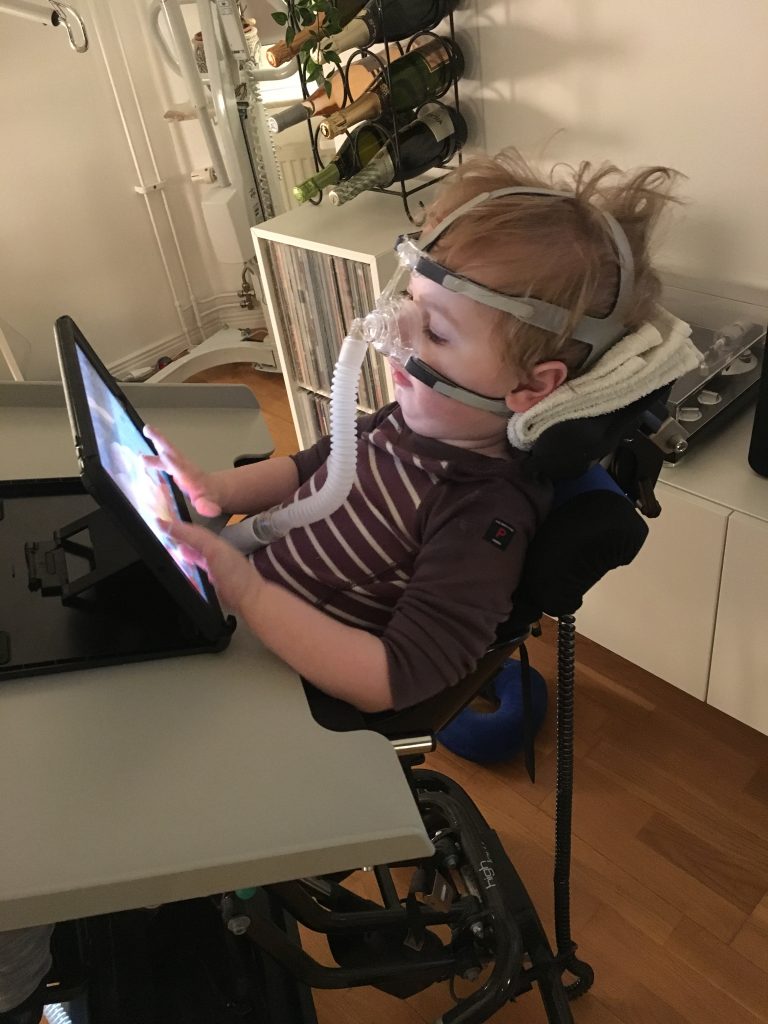 Sedan några månader tillbaka utforskar Viggo sin omgivning på en bräda med svängbara hjul, lite lik en skateboard. Tipset fick de av en annan familj då traditionella hjälpmedel och lösningar inte har passat. Brädan styr han själv genom lägenheten och för första gången upplever han en frihet.